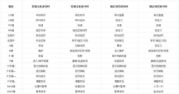 防守战术:在防守时按下→键后,会出现一个防守战术面板,按RT键可翻页。