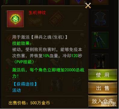 大奖-生机神纹:用于激活、升级神兵技能(生机)