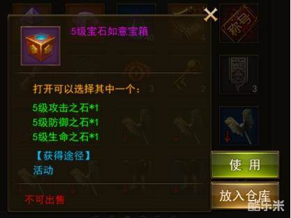 新增道具:5级宝石如意宝箱,5级攻击、防御、生命之石3选1