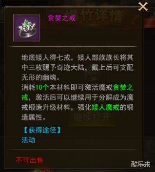 新增道具:贪婪之戒,未激活时消耗10个进行激活,激活后可分解成为魔戒锻造升级材料