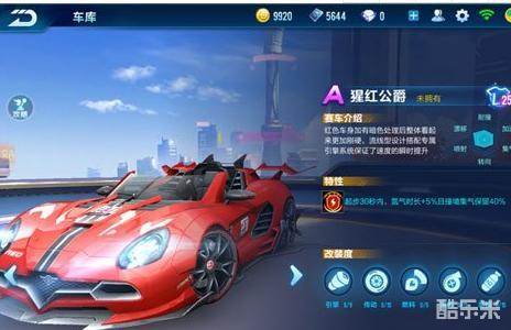 A级赛车猩红公爵外型美观,特性也非常实用,可以帮助玩家在前期抢占内道,建立巨大的优势,同时猩红公爵优秀的漂移和喷射性能,让它非常适合赛道复杂的高难度地图,无愧赛场霸主之称!