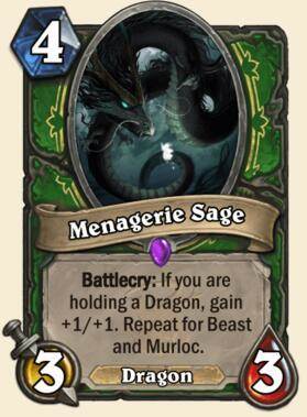 战吼:如果你的手牌中有龙牌,获得+1/+1,检查野兽牌与鱼人牌并重复这个效果。