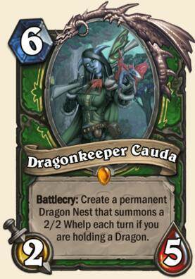 战吼:制造一个始终存在的龙巢,在你手牌中有龙牌时,每个回合召唤1个2/2雏龙。