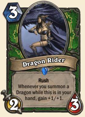 突袭。当这张牌在你手牌中时,你没召唤1个龙,这个随从便获得+1/+1