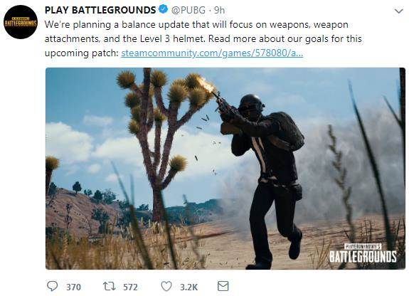 《绝地求生》官方推特公布他们正计划进行平衡性调整更新,重点调整武器,武器配件和三级头盔,官方称“三级头盔是可以影响比赛的结果的物品,所以我该物品将只出现在空投补给箱子”。这样一来,玩家以后只能通过空投补给拿到这个神器了,游戏更加公平。