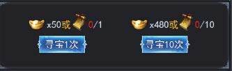 50元宝一次,480元宝10次。消耗一张寻宝券可以寻宝一次。还是蛮划算的,十连还有折扣折扣20元宝虽然不多。