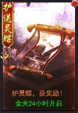 点击战场就可以看见护送灵蝶的菜单了,全天24小时开放。点击护送灵蝶获得奖励。