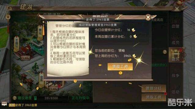血盟系统是轩辕传奇手游中非常重要的一个基础系统,可以说游戏中大部分的玩法都要以血盟为基础,例如据点祭天、天罡伏魔阵、建功立业、血盟镇妖、血盟祈福、雕像参拜、炼狱联赛、阪泉擂台以及城战玩法等等,都是要进入血盟之后才能进行的一些游戏内容。拉起一个摊子,管理好偌大的血盟绝对不是一件简单的事情,所以在血盟福利中会有血盟管理分红这项奖励措施的存在。