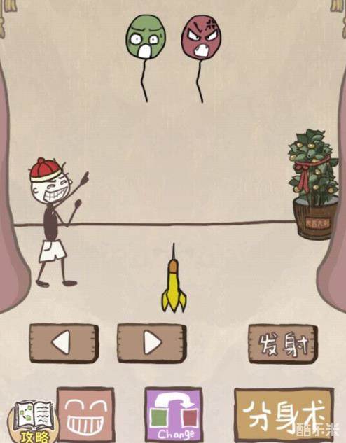 玩家注意:第一次射击红色气球,第二次射击绿色气球的时候立即点分身术,这样就可以打破气球了!