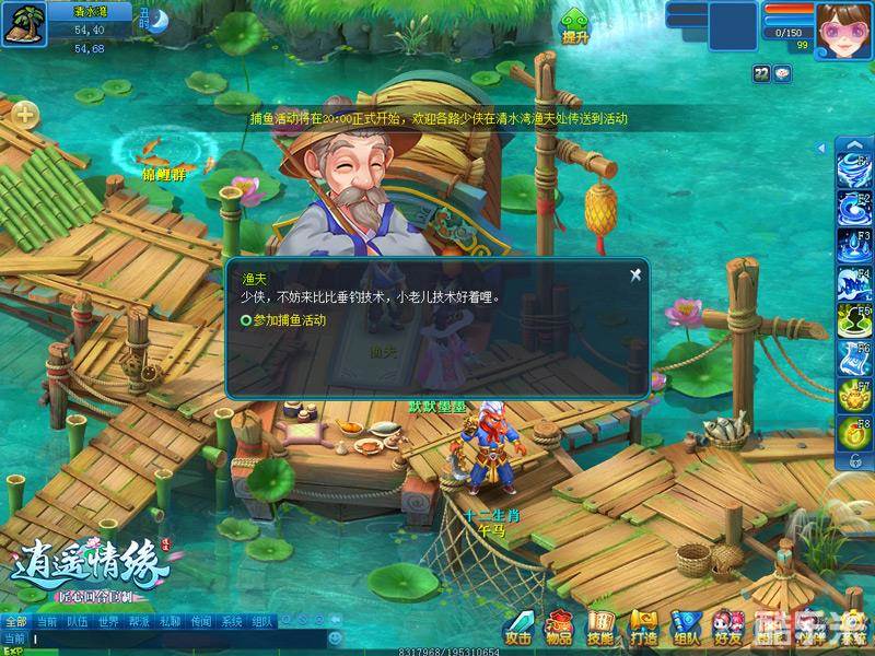 大海是孕育生命的摇篮,也是养育着沿海人民的大粮仓!《逍遥情缘》的世界水域广阔,水产十分丰富,鱼群种类繁多。为了打捞更多的海鱼,同时也是为了展现大家精湛的捕鱼技术,一场为期一小时的盛大捕鱼大会将会每隔一周就开展一次,对自己有信心的玩家都可以参加哟!