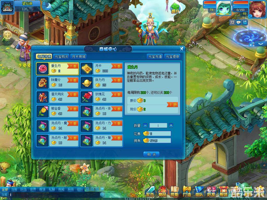 作用:门派、帮派技能学习,修炼学习,日常道具、商会物品购买。