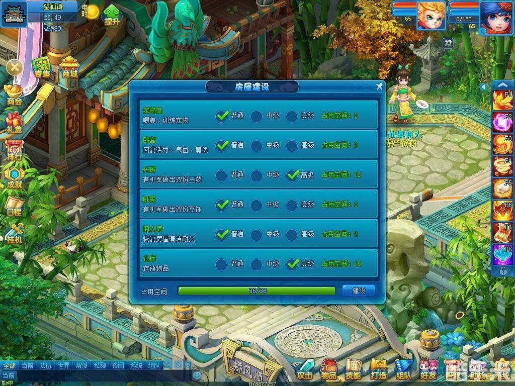 30级或以上玩家可找望仙镇(25.49)建房吏申请建房
