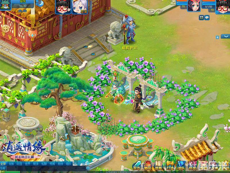 拥有房屋的玩家可以在家园庭院内摆放装饰,花草、树木、桌椅、石像、假山、流水等等多达数十种装饰随意搭配,装饰可以在商会内进行购买。