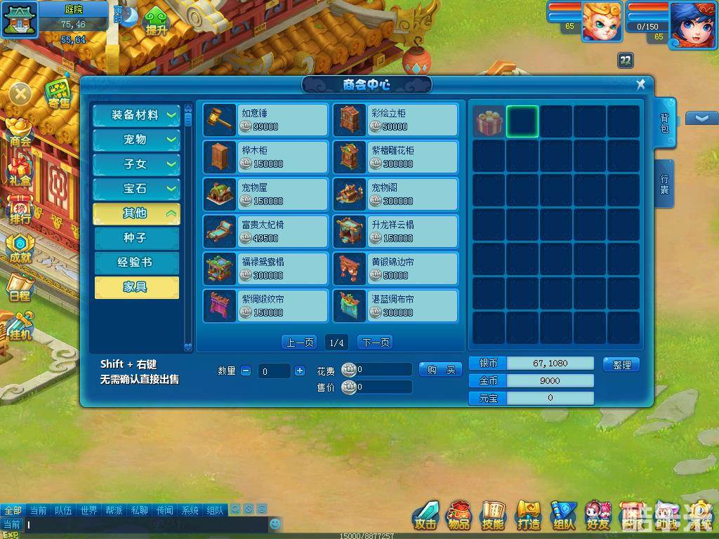 拥有房屋的玩家可以在房屋内根据自己喜好随意DIY家具的摆放,床榻、柜子、椅子、窗帘、地毯、盆栽等等多达几十种家具均可在商会里消耗银币进行购买。