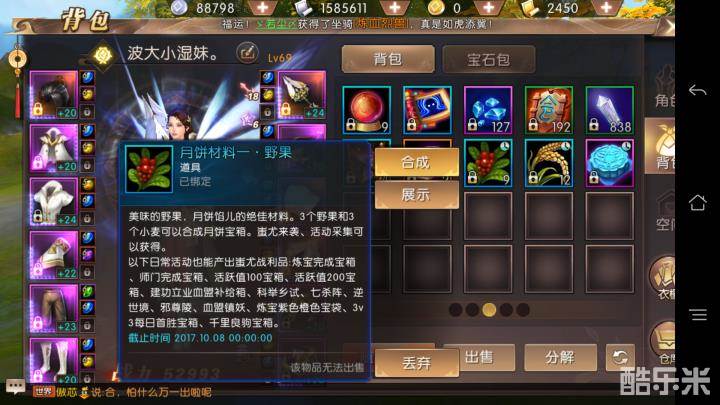 做月饼肯定少不了各种馅料、面粉,同样在我们游戏中,不知不觉发现背包中多了一些材料:月饼材料一野果和月饼材料二小麦。想要制作月饼就要考虑到材料的配比,其实在游戏活动中月饼制作还是挺简单的:成熟的小麦磨成面粉,是制作香甜月饼的不二之选,美味的野果也是制作月饼馅料的绝佳材料,3个野果和3个小麦就可以合成一个中秋月饼了。