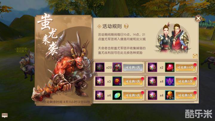 除了日常活动外,蚩尤来袭活动和野外采集活动也可以获得月饼材料野果、小麦。蚩尤来袭产出的月饼材料还有可能是非绑定的,勇士们可以将材料放在拍卖行换取银币。活动期间的晚上20点30-23点,冰川谷地图会举行天降月饼材料活动,在采集月饼材料的过程中还可以攻击其他玩家,打断他人的采集过程从而抢夺月饼材料。