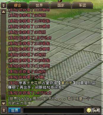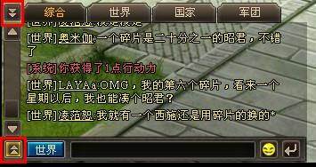 聊天频道显示区分为:综合、世界、国家、军团,玩家可以通过选择不同的聊天显示区找到自己所需的信息。