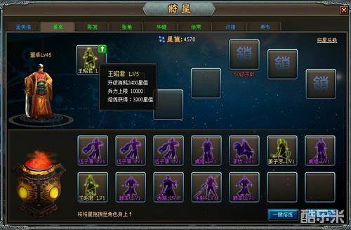 将星是拥有强大属性的道具,装备在武将身上即可使武将增加将星所携带的属性。