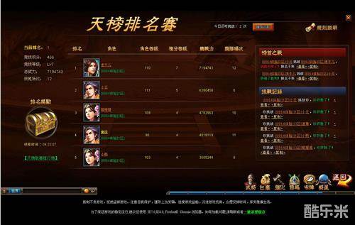 跨服排名赛是精英玩家之间的较量,争夺排行榜第一宝座的地方。在这里全靠玩家的实力说话,唯有击退强敌的挑战,才能保住自己的排名;唯有逆流而上,战胜实力超群的玩家,才能往上攀爬,最终达到排名赛的顶峰,获得第一的称号。