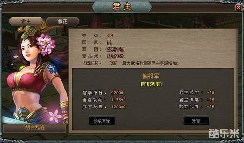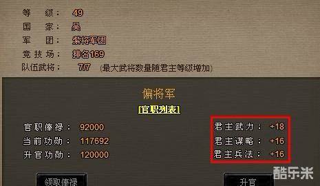 通过竞技场和军团生产获得的功勋,可以用来升官,官职越高每天领取的俸禄越多;