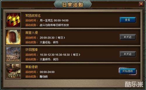 许田围猎活动为两人组队活动,参与活动无需报名,活动开启时,在“日常活动”里面点击参加,即可参与。