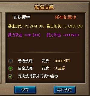 如果想不改变属性的种类,增加属性的数值,可以使用定向洗练来对装备的神秘属性进行洗练。