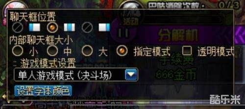 对于全屏玩家,游戏聊天框不得不在游戏内,不过这样的话被聊天框挡住的部分游戏无法操作,但是在设置里面有个透明模式,开启透明模式就不影响了。不过透明模式下,玩家是不能查看聊天框中人物的信息,所以有时(比如说找时空车的时候)有必要关闭透明模式。