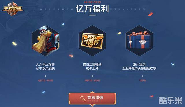 4月29-5月1日,玩家通过参与运营活动将有机会获得三张开黑卡。作为奖励,在5月5日当天登录的王者也将有机会获得一张。在5月5日00:00~23:59,五排的玩家将可能获得三次不掉星的机会。
