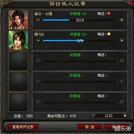 如上图,按快捷键[N]可打开好感系统界面,添加你要评价的对象,就可以开始评价了。可多次评价,但两次评论需间隔至少5分钟。