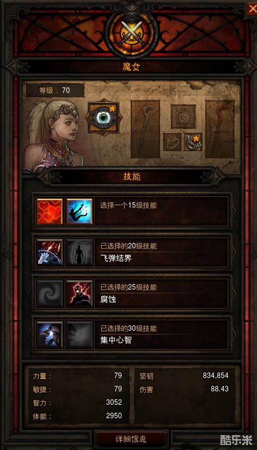 第一排技能不加,因为两个都会影响聚怪。第二排选择远减,第三排选择AOE的3%增伤,第四排选择3%攻速。如果你点错了,怎么办。再建个小号升到70级重新雇佣一次女巫就行了。为什么不用寇大腿,因为这3%的增伤实战效果很好可以避免很多精英剩一点点血还要带走下一波才能收掉的尴尬,尤其在极限层数。寇大腿的两口奶有时候很关键。但是生存都可以通过操作弥补,最终制约上限的一定是伤害不够。