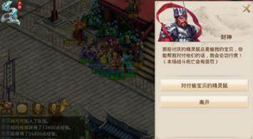 财神身边同样有9个小怪,分别为精灵鼠、宠物狗、财气猪和功夫龙,挑战的主要内容就是帮助财神清理他身边的精灵鼠。另外,这项挑战除了功夫龙之外的其他小动物都是没有攻击能力的,所以比较不用担心死亡的问题。