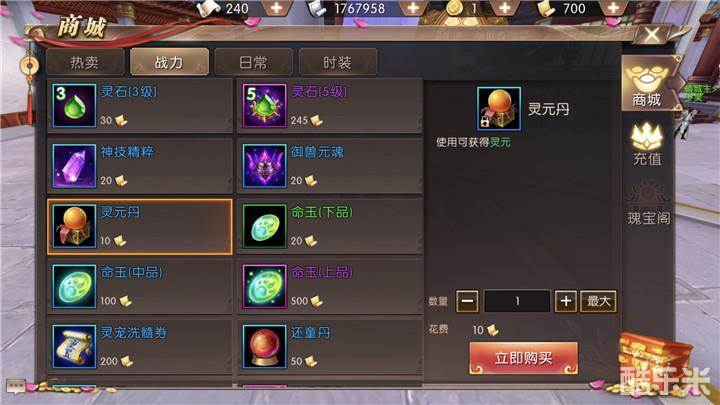 有的勇士会认为,这么点东西,都不够打牙祭的。但是积少成多啊,如果你连续买一个月。那么会被没有买礼包的勇士多240个赤星玉、300000银票、568500灵元、盟贡36000、玄冥真水30个、御兽元魂90个、灵草(一品)300棵、清缴令(蓝)30个、普通藏宝图30个、灵宠技能书匣30个。耀星玉150个、灵酒(蓝)30个、神秘宝箱60个、宝石经验(10)240个、无色宝石900个、金票3000。这样看来,礼包里面的东西是不是很可观呢?