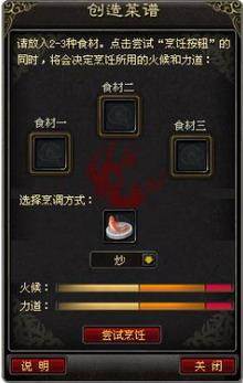 玩家在学习初级烹饪之后,获得以下二个技能:制作菜肴、创造菜谱。