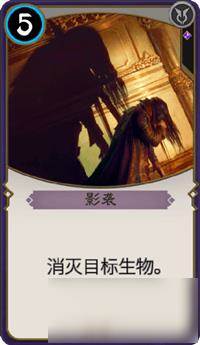 影袭:消灭目标生物。这张卡简单粗暴,5费直接去除一张生物,当然在费用上亏了一点点,另外,如果对方是控制卡组,后期难免有大哥,所以这张卡解法尔考有些大材小用。