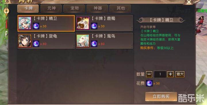 点击我们获得的龙珠可以看到兑换选项,在龙珠兑换商店中我们可以看到琳琅满目多种物品。按照类别可以分为卡牌、元神、宠物、神器和其他几大种类。在卡牌分类中,精卫、鹿蜀、旋龟以及鸾鸟都是非常稀有的卡牌,使用龙珠兑换的卡牌可以让我们在山海界系统中提升大量战斗力。在元神兑换中勇士们可以兑换元神重置石和各等级的紫色橙色元神洗练石,对于勇士们重铸元神属性大有帮助。