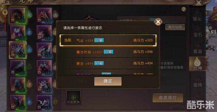 无论是六十级还是七十级,想要使用洗练石就需要先激活装备的元神。元神系统的激活是一个漫长的过程,最后一件洗不出来可以一边打造新装备一边洗练,因为新打造出来的装备会有一个随机的元神,如果运气好直接就满足元神需求和激活需求。各个职业对于力量、智力、气运和耐力、生命值以及气运和暴击等属性都各有需求,只要能重置出自己职业所需的属性都可以保留使用。