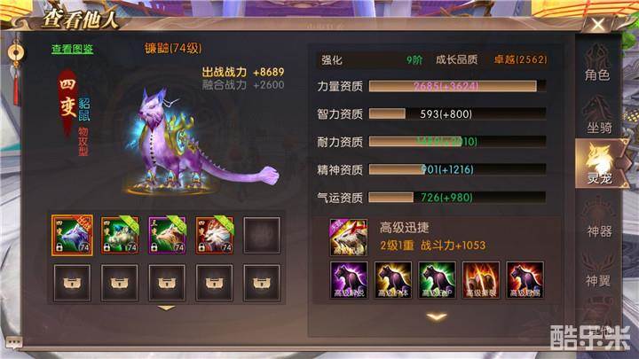 外形酷似狐狸,却有一张老鼠的脸。长得的尾巴布满倒刺,不停的摇摆着。两颗长长的獠牙,犀利的眼神,一看就不好惹。55级勇士就可以携带貂鼠了。貂鼠变异后可以分为初代貂鼠、二阶璃狸、三阶炙鬃、四阶镰鼬、四阶貂珥、四阶焚魄。貂鼠自带天赋技能迅捷:初始是闪避等级提高10点、命中等级提高10点,受到攻击有概率获得迅捷状态,移动速度提高5%。河马自带天赋技能高级迅捷:初始闪避等级提高20点、命中等级提高20点,受到攻击有概率获得迅捷状态,移动速度提高10%。天赋技能迅捷和高级迅捷都可以升级,每升一级,闪避等级、命中等级、移动速度都会有所提升。三阶炙鬃属于血防型灵宠,主加耐力资质。四阶镰鼬物攻型灵宠,主加力量和耐力资质。四阶貂珥属于法攻型灵宠,主加智力和耐力。