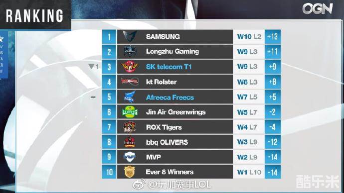 昨日SKT 0:2不敌AFs后,他们本周吞下二连败苦果的同时排名也从此前的第一名下滑到第三名。而今天排在他们身后的KT战队将会迎来联赛排名倒数第一的EEW,如果KT能2:0击败对手,SKT的排名将会下滑至第四。