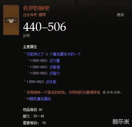 由于有掠夺2全宠物,这个腰带的减伤为63%,如果配合三狼衣,减伤能达到81%。