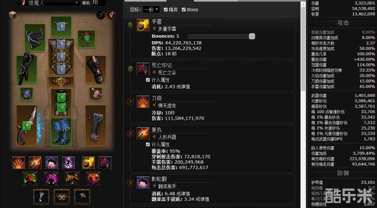 ,下面是模拟的配装,装备是按照满属性算的,宝石统一60级,800巅峰,没打卡,词缀随便选了一下,不过可以看出,全部buff之下,输出还是不错的