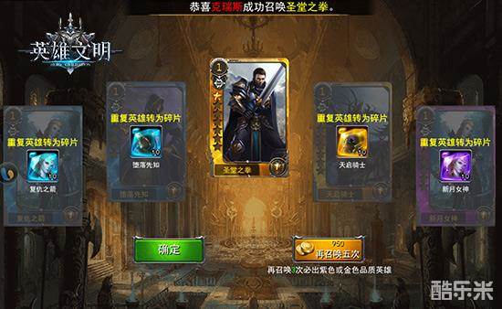 既然是卡牌就会有稀有度、属性、技能等的差异,但是英雄文明并不打算大玩“赌博式抽卡”,即使是最稀有的橙色英雄也并不难获得,游戏中有“召唤N次必出紫色或金色英雄”等保底机制,抽出的重复英雄还能回炉再造。