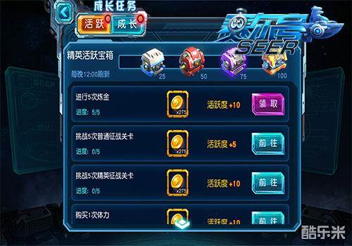 当然想要刷活跃值,也是需要技巧滴。每天快速完成“5次普通关卡”、“5次精英关卡”等任务选项,就可以轻松领取25至50的活跃度宝箱。在如此短时间就能获得丰厚的钻石金币奖励,想想都有点小激动呢。