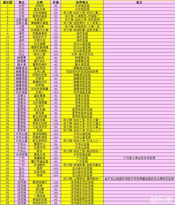 《古剑奇谭2》是一款非常耐玩的游戏,游戏内容非常丰富,光是宝物就多达58种,每一种宝物的获得地点、价值,以及藏宝图的所在位置都不同,小编将全部58种宝物的详细资料信息都整理到了一起,方便玩家们阅览查看。