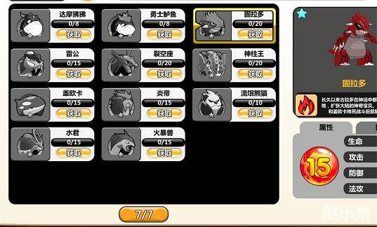 在全游戏中,小精灵的资质由10~15之间不等,而这只皮糙肉厚的卡比兽竟然高达恐怖的14,这代表了它的成长空间和幅度十分巨大,甚至媲美各种老牌神兽。而且体型巨大的卡比兽在过剧情,挑战竞技场这方面有得天独厚的优势,主动技能是圆形超大范围的百万吨拳击,配合上被动的觉醒力量,这一拳下去整个屏幕的敌人都要瞬间阵亡!