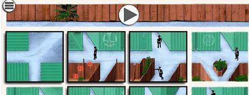 本关有5张可控制的图片,首先将左边第1张图旋转成向右上角移动的方向,然后将中间的4张图调成下图中的样子,即可顺利避开所有警察的视线完成通关。