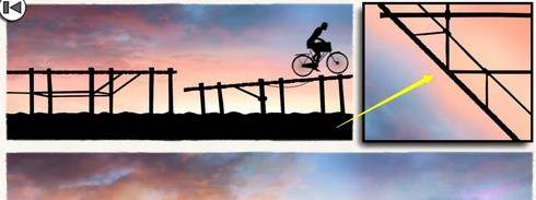 这关比较简单,只要把右上角的图片旋转成下图的样子即可拿到物品,然后借助俯冲惯性到达对岸。