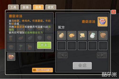 可以携带腐蚀药水(增加对怪物的伤害力)或能够增加buff的食物(例如蘑菇浓汤或鱼肉蔬菜浓汤)。