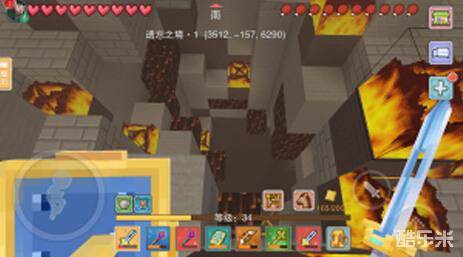 到达第三层后,就能看到岩浆,需要迅速上岸。