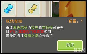 奶块极地卷轴是通往极寒之境的门票,需要配合黑曜石门使用。