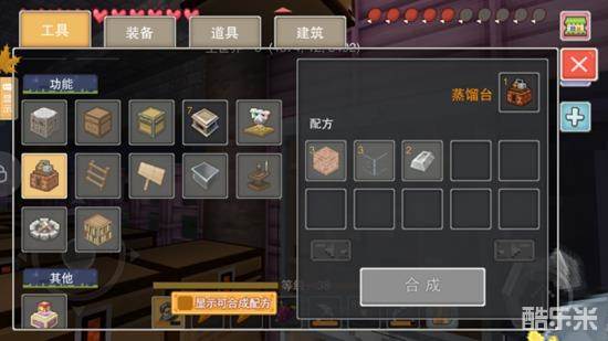 任意玻璃*3、铁锭*2、红砖块*3(合成台-工具-功能类)
